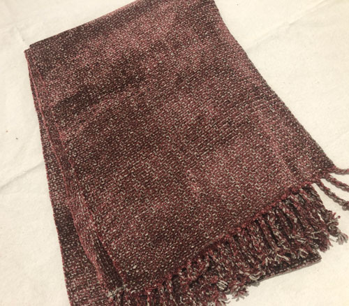 Terry said that the group had already seen the material in this scarf. Last summmer it was alpaca and silk fleece. He has since spun it and dyed it.