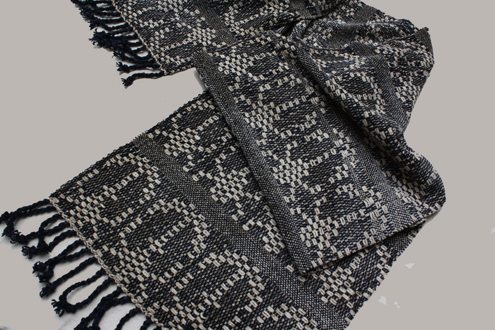 The use of leno in the main portion and the care with the fringe knotting are worth special attention. Some work!!!