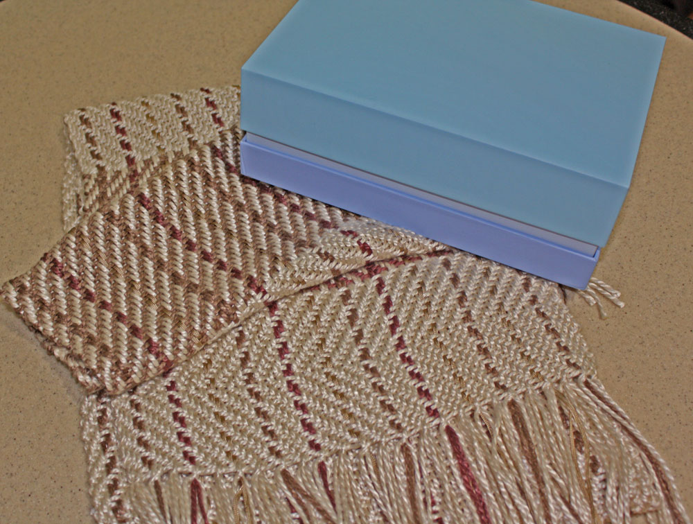 Claudia visited a lot of local shops to find the right size silk yarn for this. And she presented it by taking it out of a very fancy box.