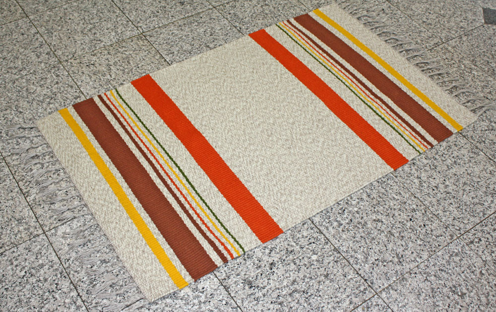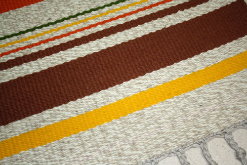 Darby wove this wonderfully bright rug. Out of the box was her color choice.
