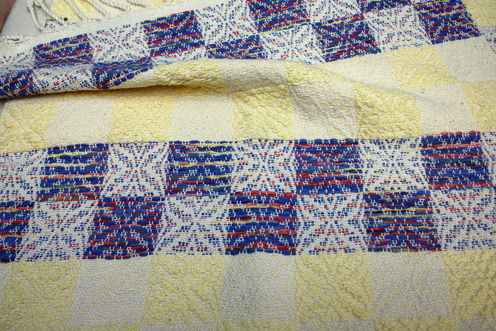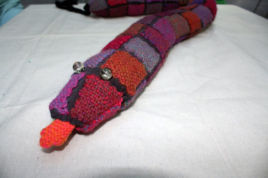 All the patches were done on a Weaveit loom and then hand sewn together. His name is "Patches". Such whimsy.