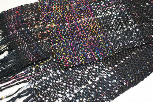 Ronnie continued to explore Bateman weaves. She says that they are designed for very fine threads but they really work well with her favorite yarn, chenille.