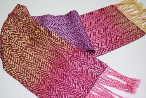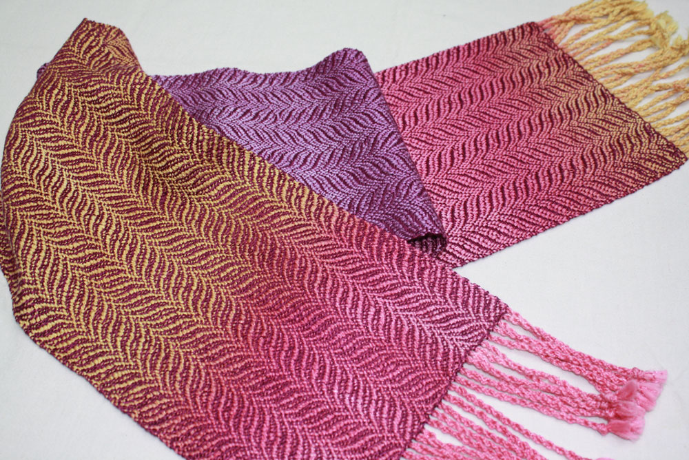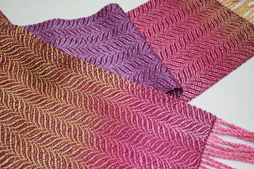 Carol's wonderful hand dyed warp works so well with this undulating twill scarf.