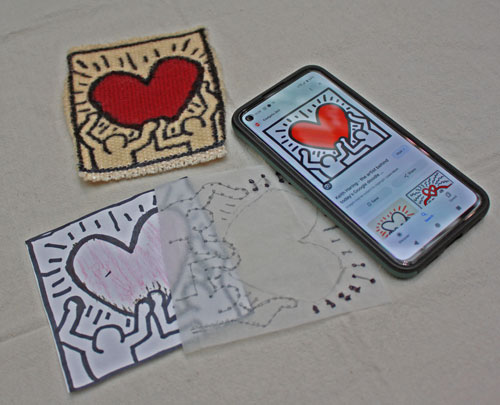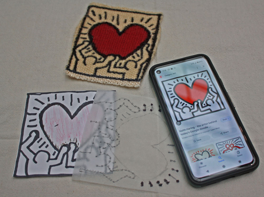 Claudia picked a Keith Harring image for her "Doodle". Not easy to do in tapestry. She wound up with a lot of bobbins working across and some of the finer lines just not practical in tapestry.