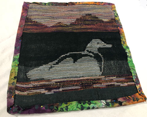 Just had to show this work by Sue. She loves double weave pick up and here she shows off her talent with this technique. It is also quilted to give some depth. Congrats Sue.