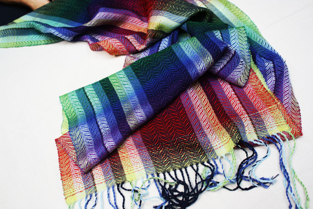 Terry made the Fibonacci sequend in the sizes of the twill blocks in this scarf.