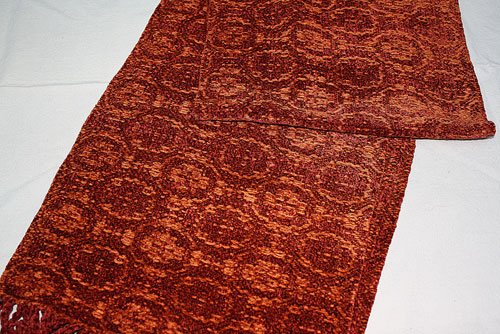 Terry did this small runner with a painted warp. That is the warp threads are painted before being woven.