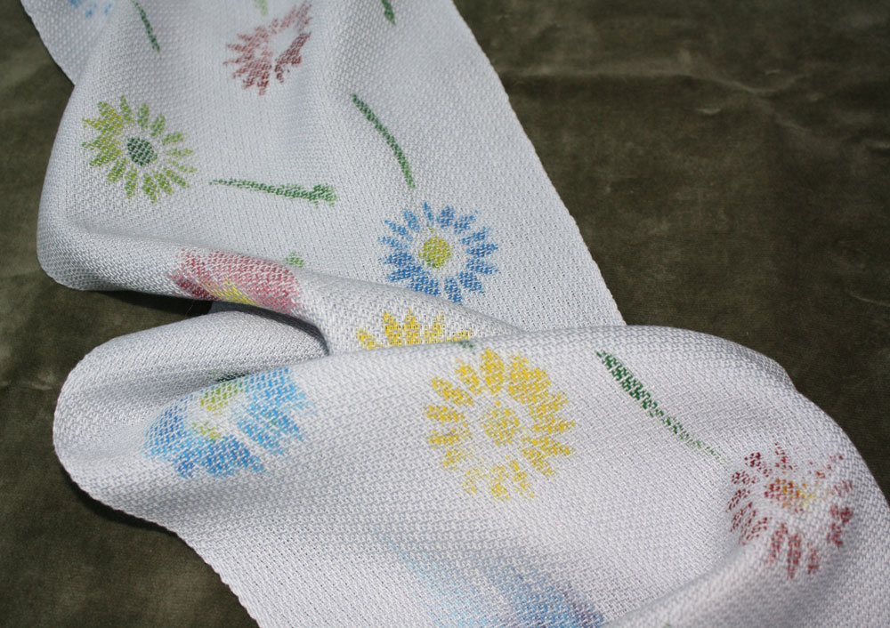 Painting the warp allows the weft to soften the colors so the result looks more like watercolors.