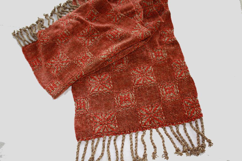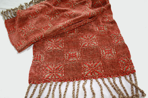 The wonderful patterns here were woven in a real blend of materials. Leila would never use just one! All masterfully handled.