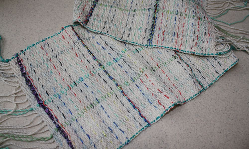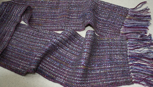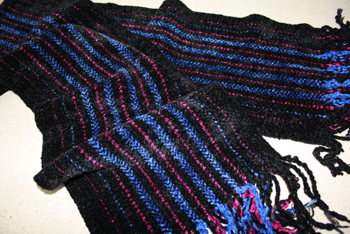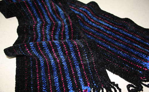 Carol made this lush chenille scarf. Just have to love the colors and pattern in those stripes.
