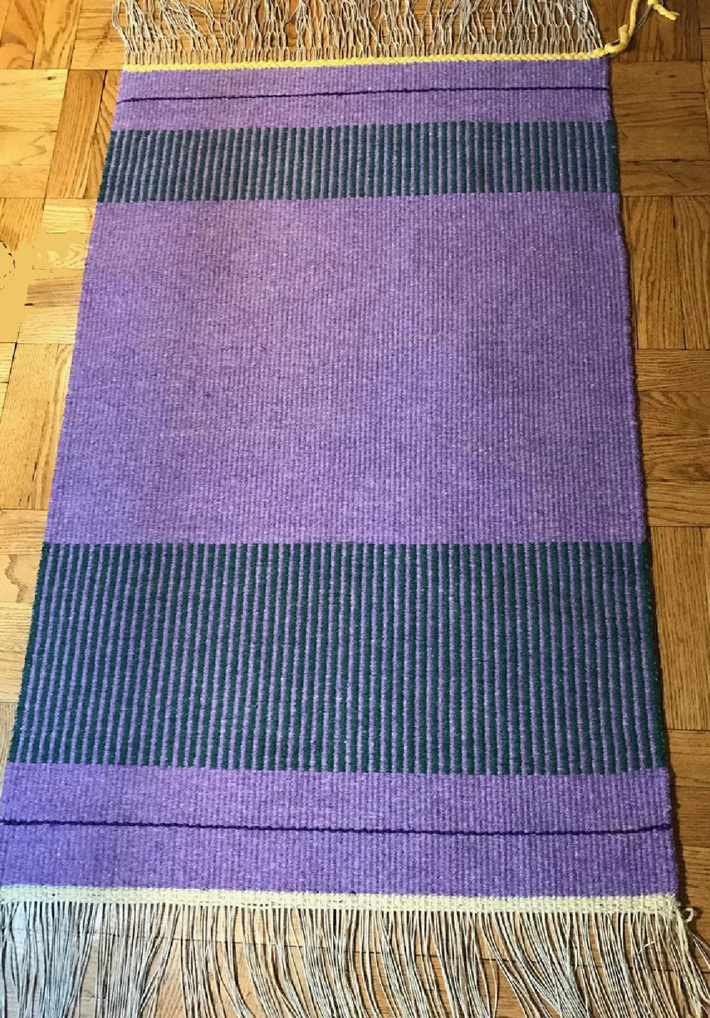 Color in Darby's rug is the answer to the challenge. Here it is in situ chez elle.