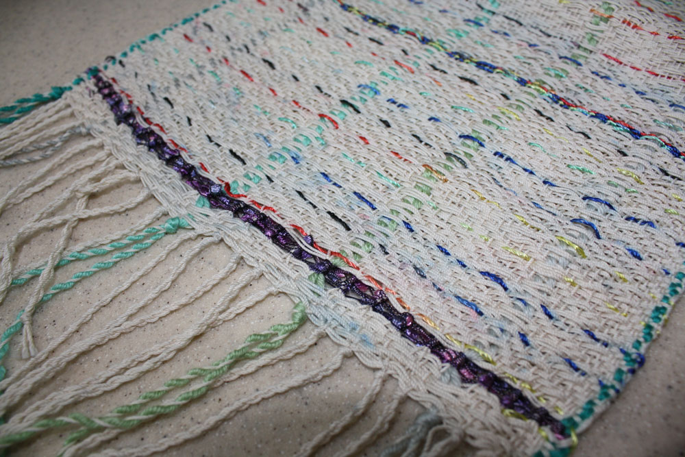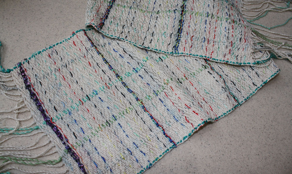 Lots of mixed yarn types which she worried about but which really blend beautifully. Another great success!