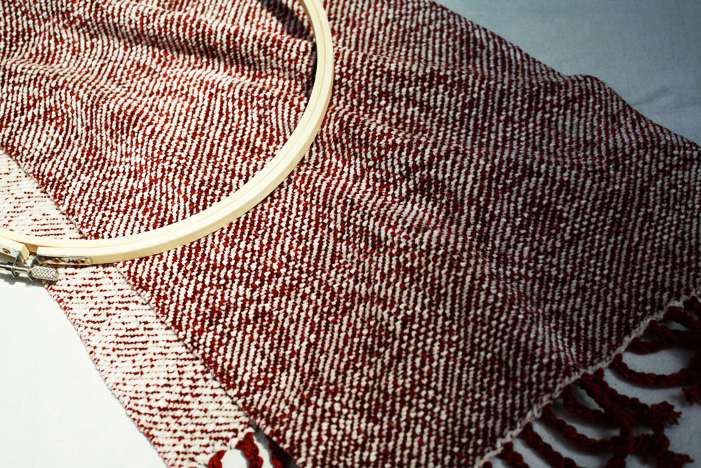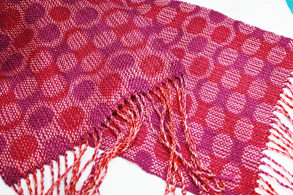And hoops there are! Carol wove this great scarf with hoops all over.
