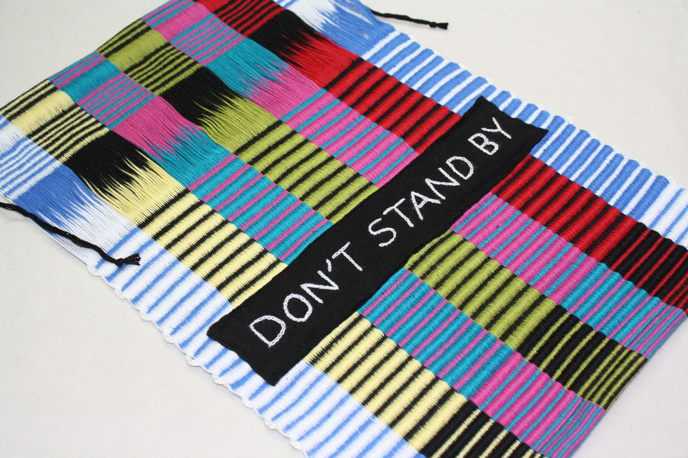 The rep weave hanging captures the image perfectly and turns th etables with the embroidered message. Fun Katy!!