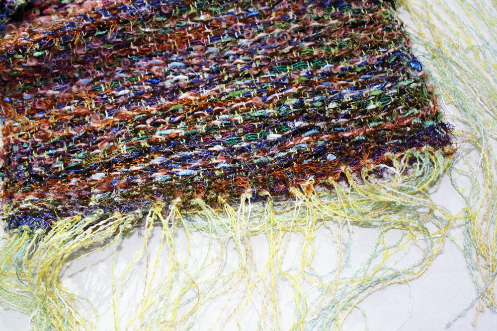 Ronnie had interupted the blocks in her chenille scarf by changing warp color.
