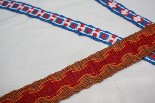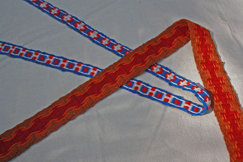 Terry notice that Kay, in one of the videos, wove some pieces with tables. So, haveing a set of tablets on hand, he set up a couple of warps.