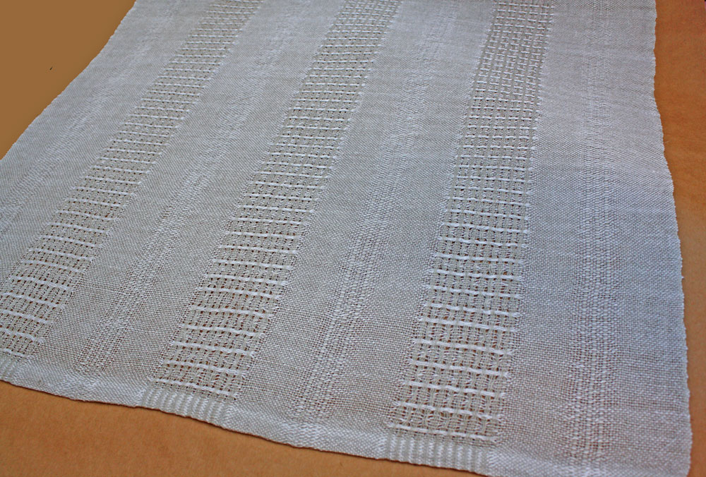 Huck lace in linen is very special and will work beautifully for the task. Congratulations Carol on the new studio.