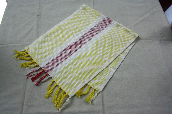 Feeling that the table runner was not quite meeting the challenge Terry wove these place mats.