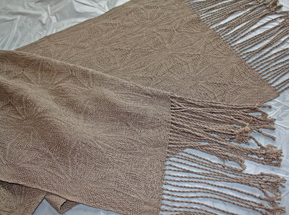 Carol created this beautiful shawl in a snowflake pattern which is really wonderful in all the same color.