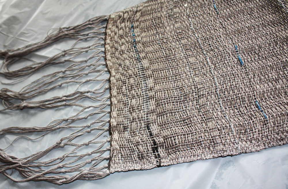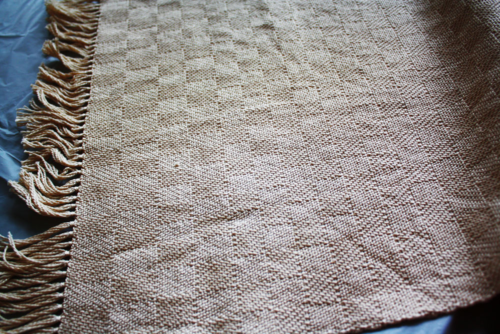 Warp is bamboo and silk. The weft is wool and tencel.
