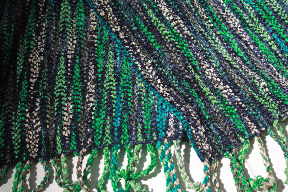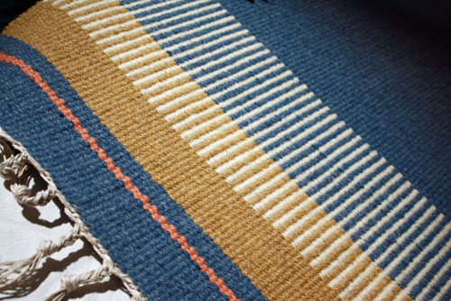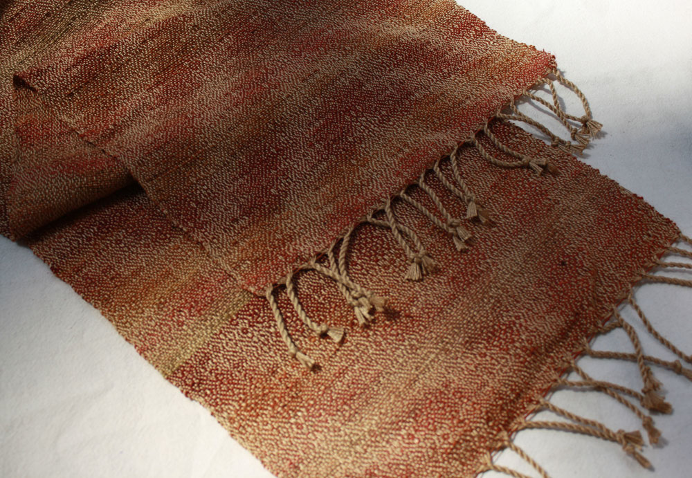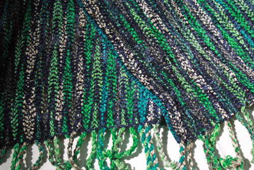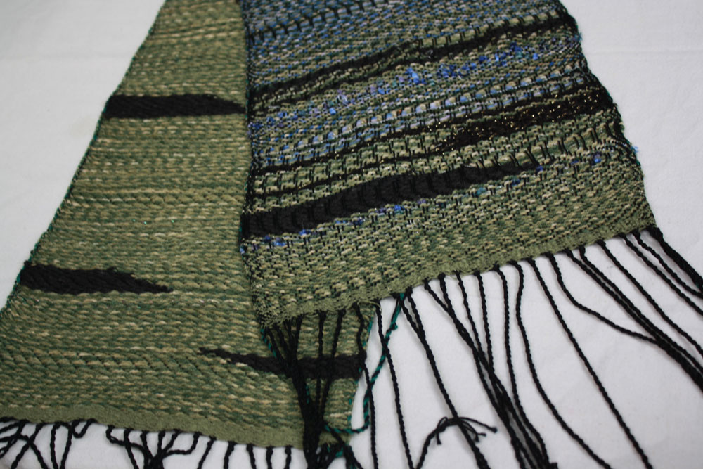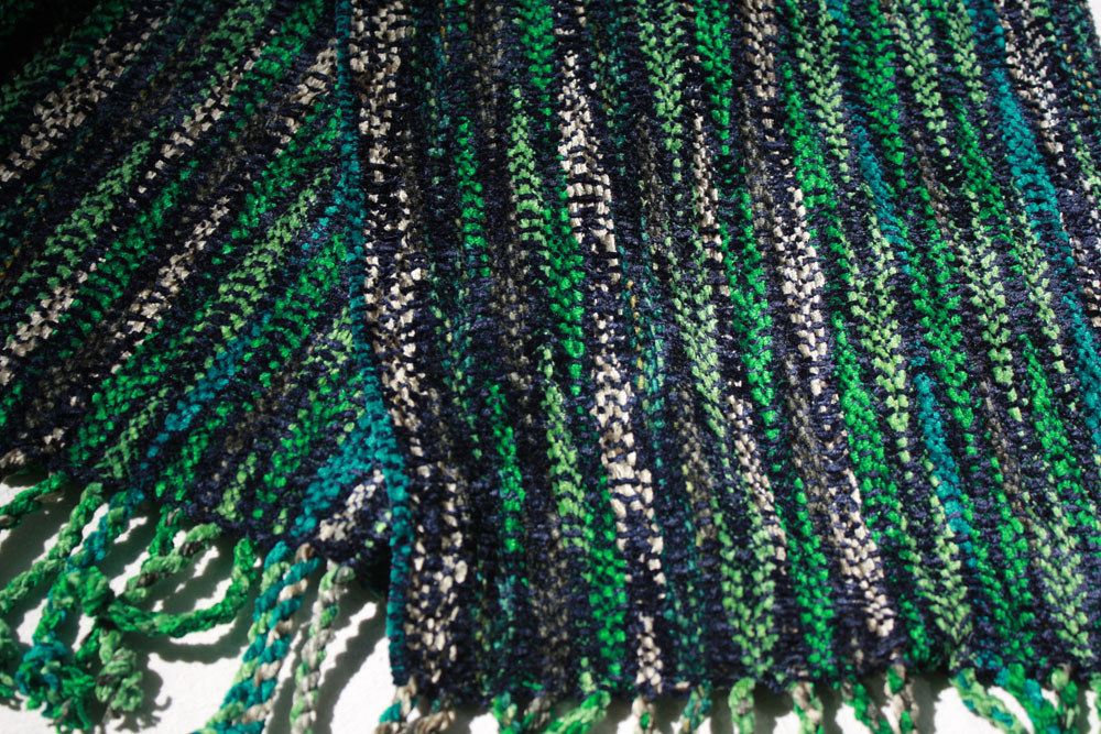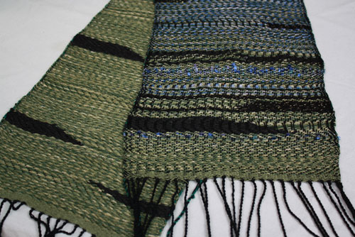 The varigated weft is Terry's handspun wool. Warp is commercial Cotton. Does it look like snake skin?