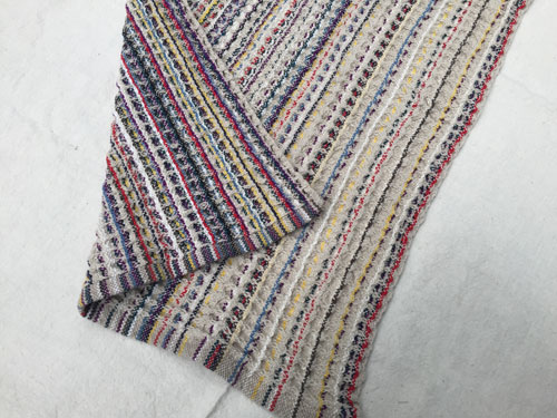 Barbara had fun with all the different colors in the warp. She said she was emptying her bobbins.