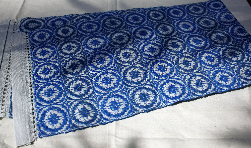 Terry did an overshot table runner in two shade of blue.