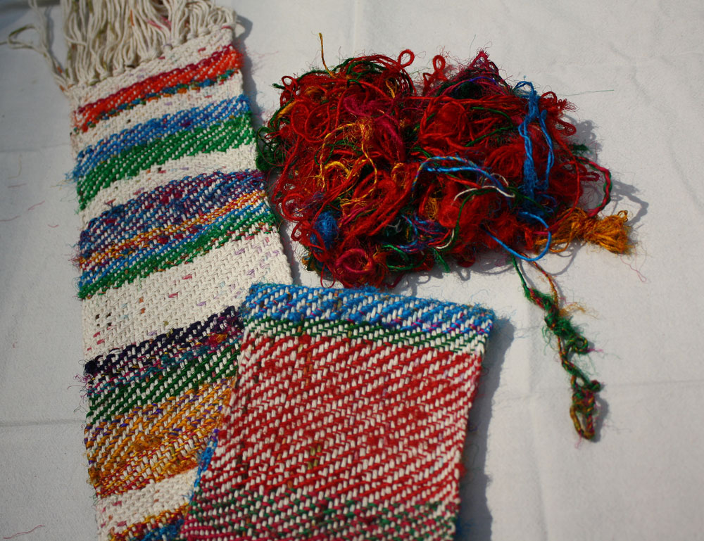 Some of the sari silk (she got it on a trip to India!) is there tangled next to the woven piece.