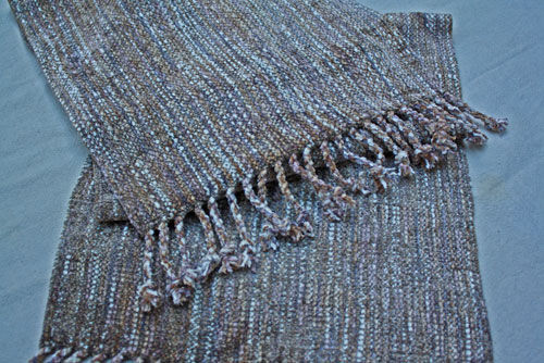 Claudia created this fabulous scarf in smoky colors. She said that she got the idea for this challenge from a musician who was playing this song as we were leaving one of our previous meetings.