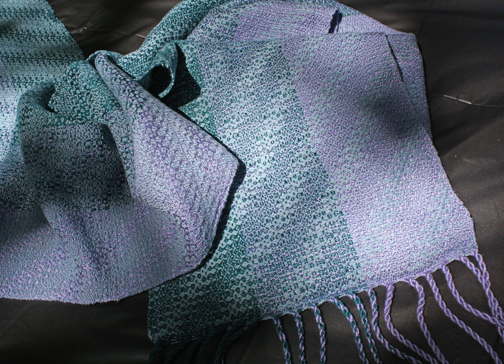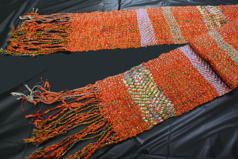 So she very cleverly stencilled some designs on the finished scarf. Love the spirals.