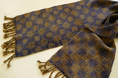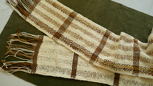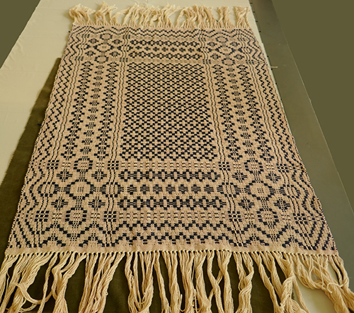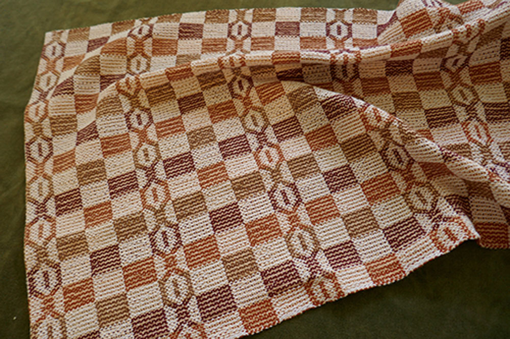 Claudia challenged herself to using overshot with squared corners on this lovely table runner..