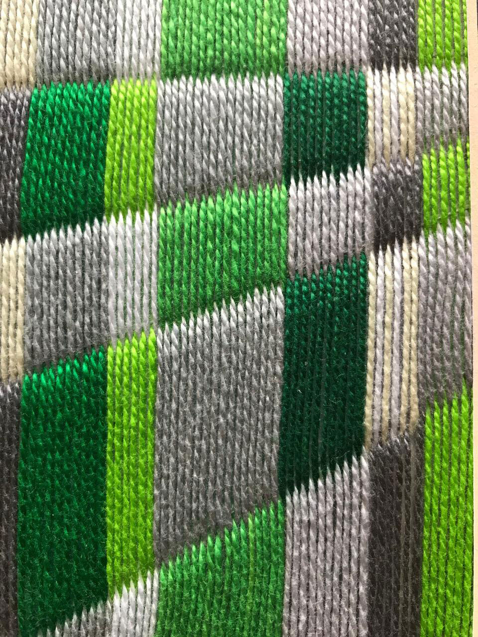 Carol: My idea was a flowering vine creeping up a wall. I have a very limited amount of yarn at home so I did this as a tapestry..