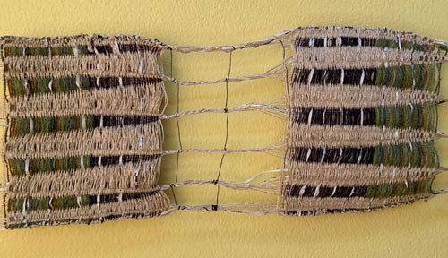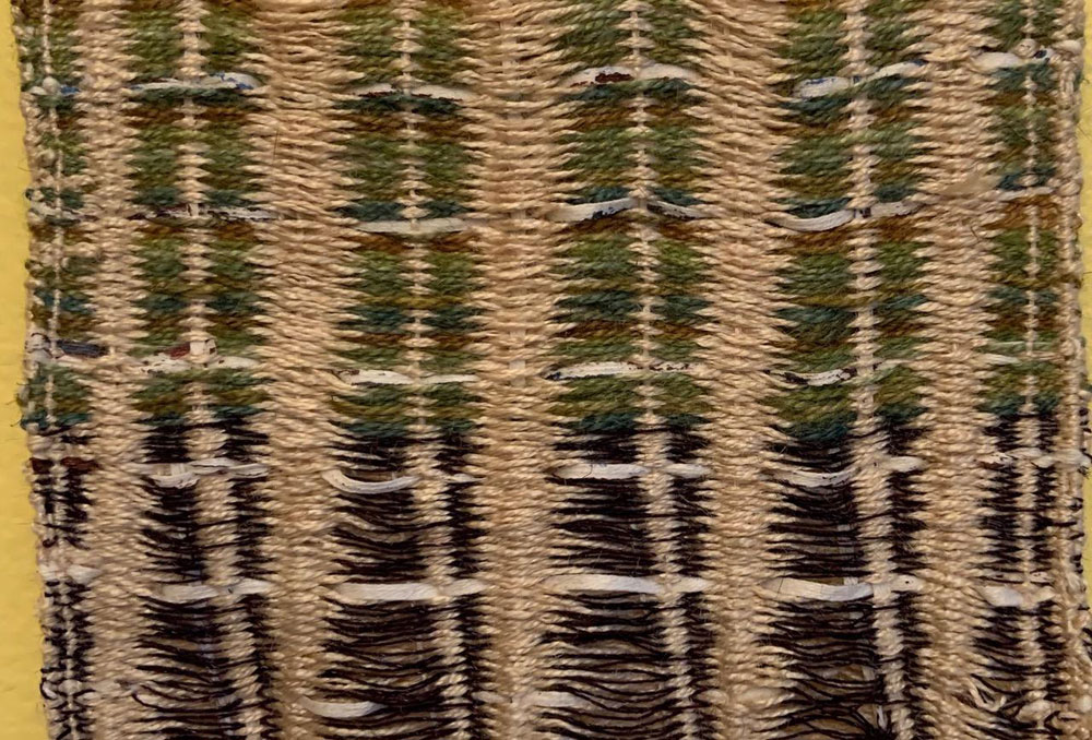 Carol: I've always admired the work of Helena Hernmarck and Silvia Heyden so I thought I would try to combine two of their techniques -- Hernmarck's use of multiple strands of different yarns and Heyden's "eccentric weft".