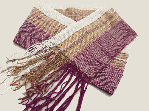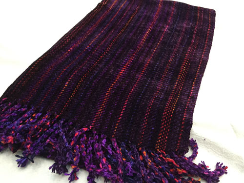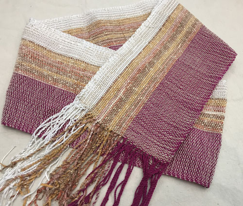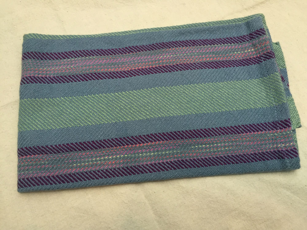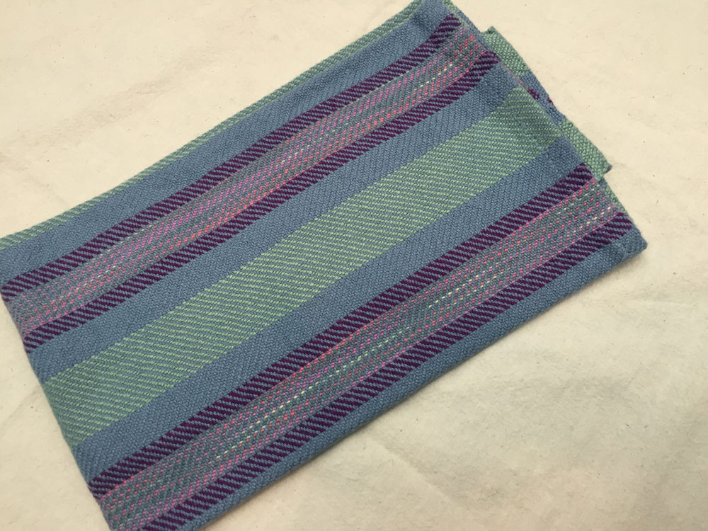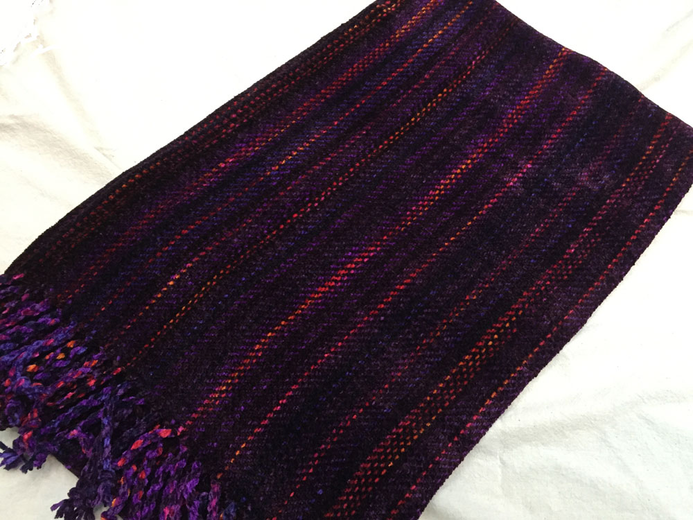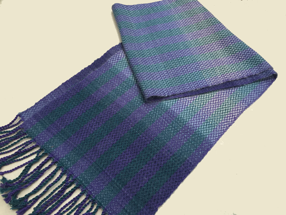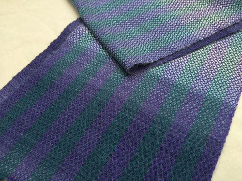 Terry used straight draw threading and a crepe weave. The color variations are in the space dyed weft.