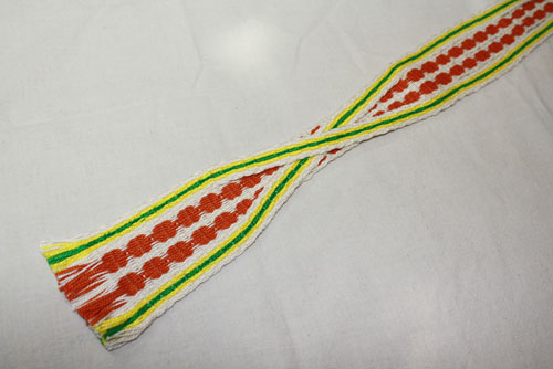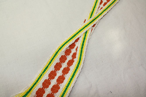 Carol got a new ink;e loom and has been weaving with tablets on it. This piece is really tricky because it had tablets switchng locations.