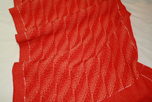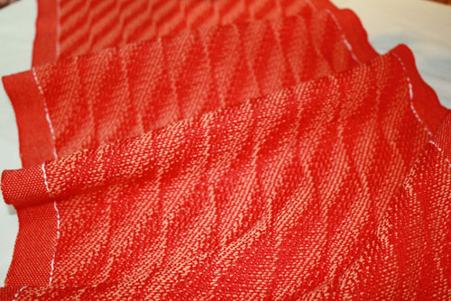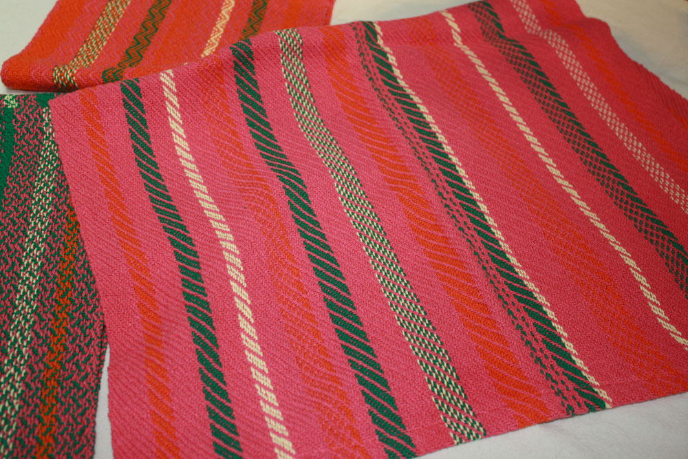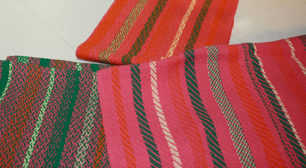 At one point it required three shuttles for the weft. The pattern reminds me of jujubes I used to get at the movies when I was a kid.