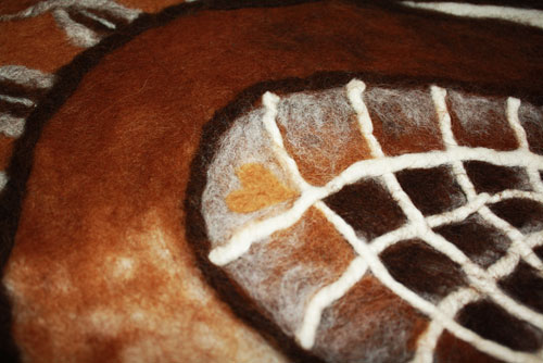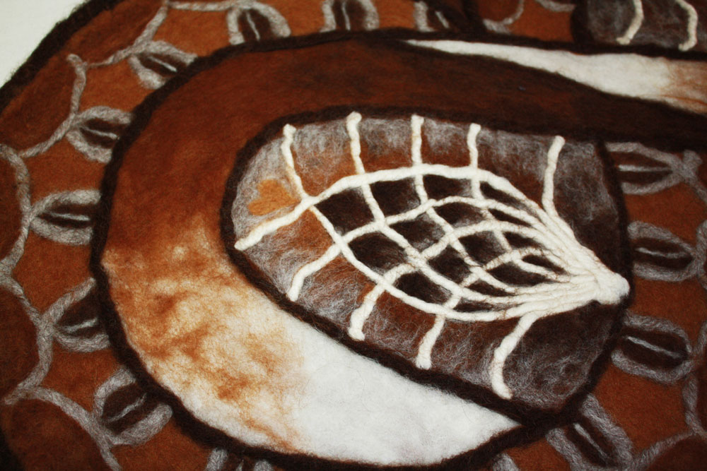 Thomas showed this needle felted work. The fleece came from animals he owned. I am guesing alpaca. Colors are natural.