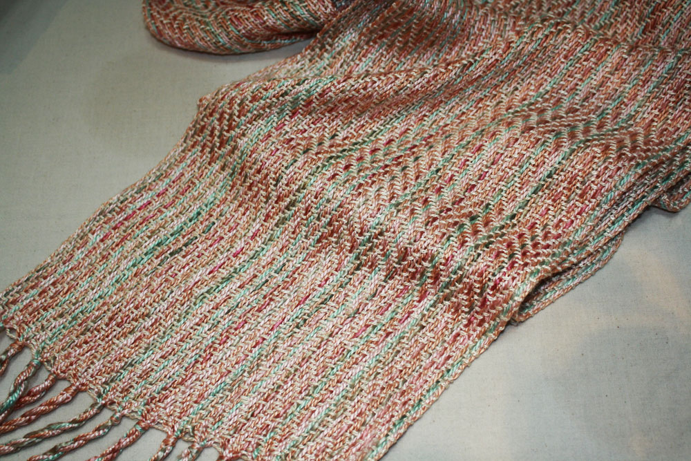 Claudia created this stunning scarf that she saw as a Tropical Sunrise.