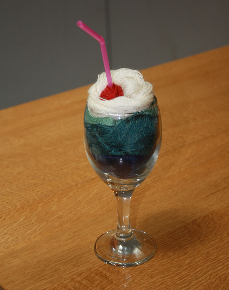 The delisious looking liquid is actually his handspun yarn. Cheers!!!.