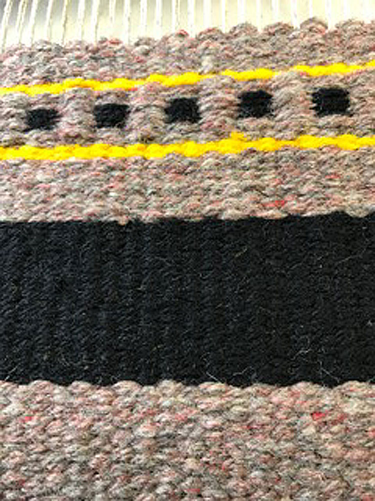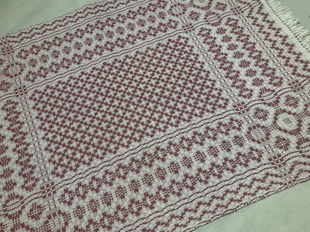 Claudia reworked an earlier piece. She wasn't happy with the color in the overshot pattern so she tried bleaching it. She is a lot happier with it now.