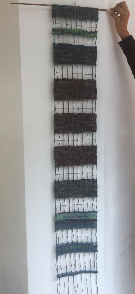 Leila is repicating a wall hanging she did a while back on a rigid heddle loom. I say it's fabulous