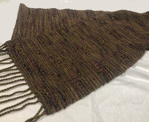 He also decided to do a scarf in a weave he first learned at the first weaving class at F.I.T. Swedish Lace. Four shafts and still a favorite to do.>