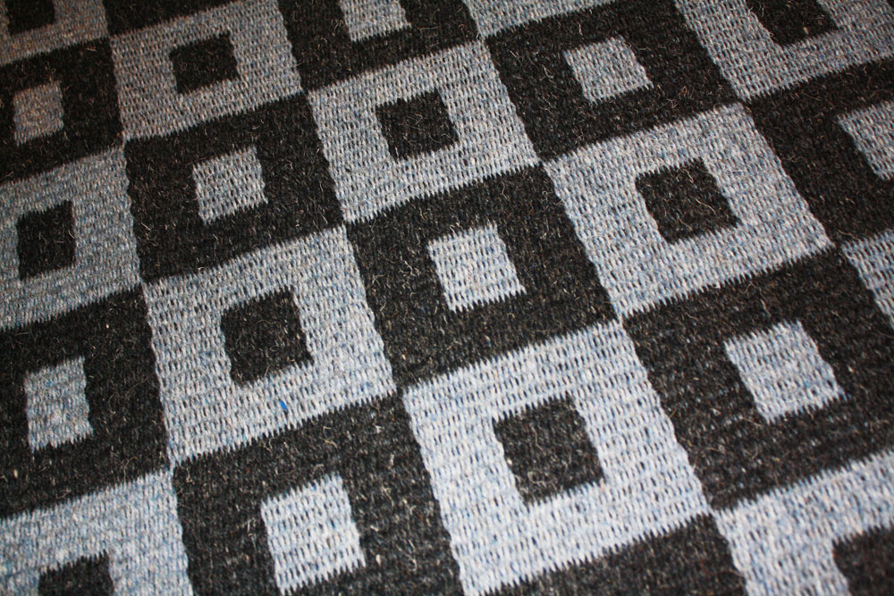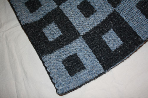 Carol created this terrific rug. It is taquete (sp?). That is the name for polychrome summer and winter threading woven on opposites. .