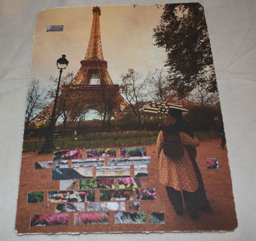 The print was done on her hand made paper. And, yes, that is her in the image.