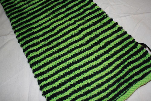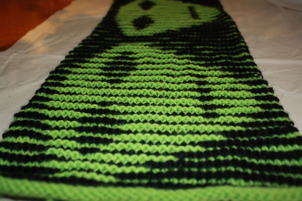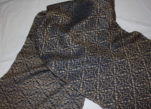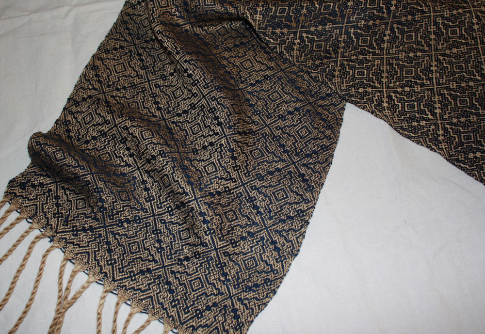 Terry said that this scarf was spelbinding to weave. With 54 picks per pattern he could almost zone out throwing the shuttle.