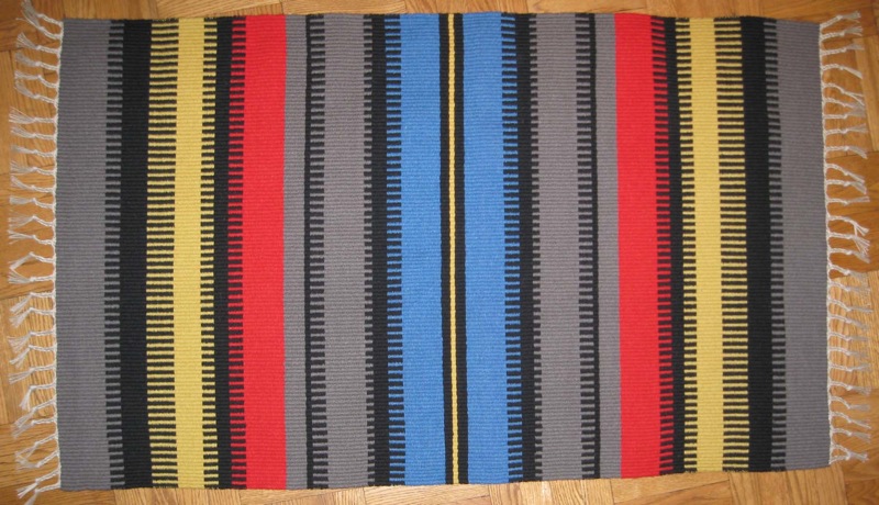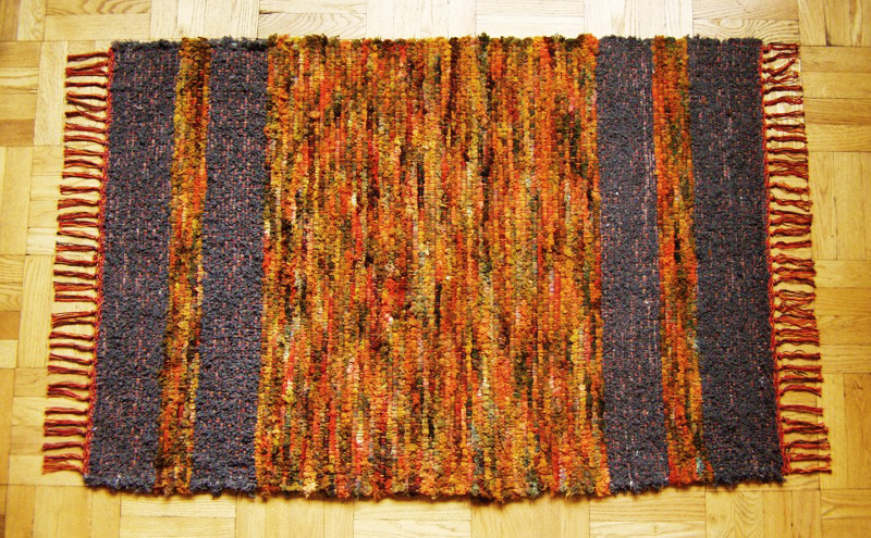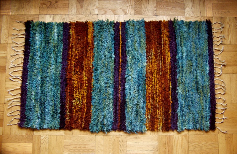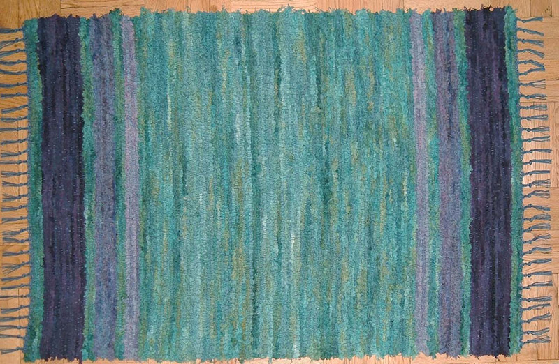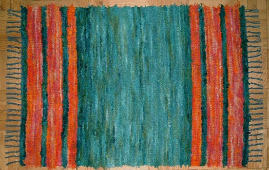 3 x 5 foot rug with cotton warp and custom dyed fabric selvages weft