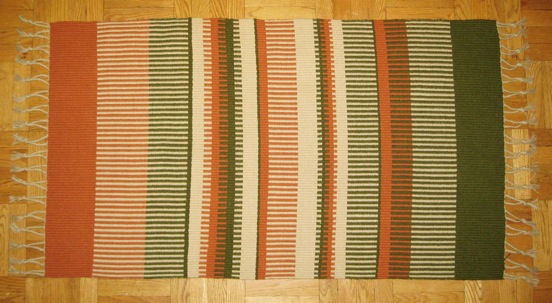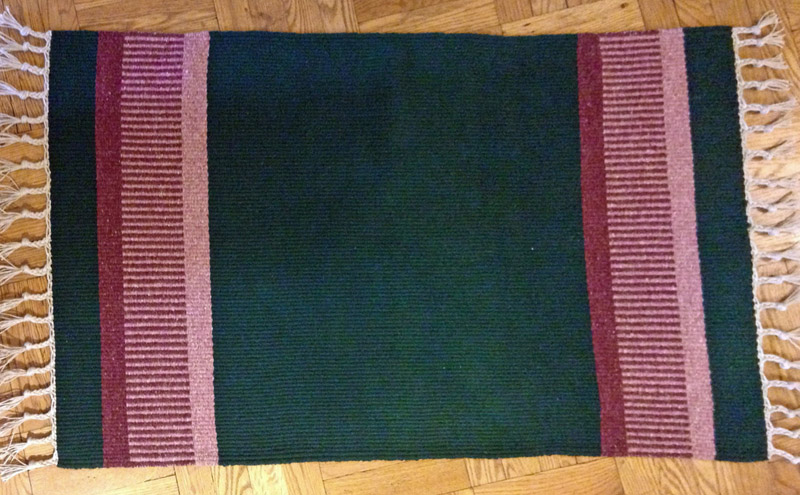 3 x 5 rug with cotton warp and custom dyed fabric selvages weft.