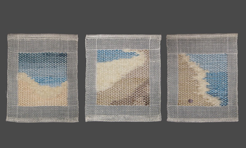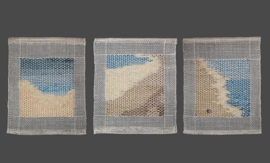 Wall Hanging, Three 6.5 x 8.5 inch panels. Linen and embroidery floss.