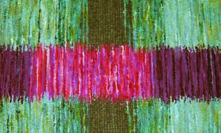 Darby weaves Painted Warp, Inlay, Rep Weave, and Boundweave Wall Hangings and Boundweave, Plain, and Twill Rugs.
