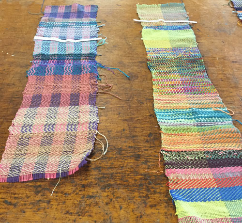At the looms we had fixed diagrams for plain weave and 2/2 twill. They began with the plain weave and when ready, moved on we switched to twill.